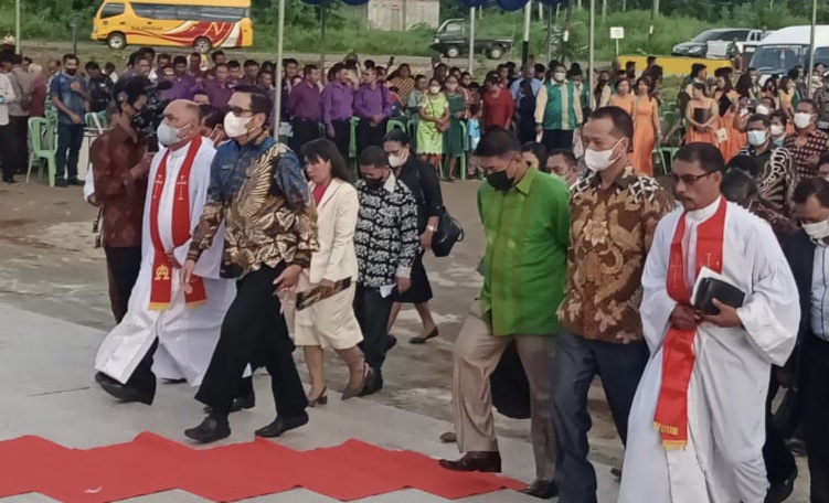 TIMURPOST.com, MOROTAI — Bupati Pulau Morotai, Benny Laos akhirnya meresmikan Gedung Oikoumene Morotai Christian Center di Kawasan Pasar CBD, Kecamatan Morotai Selatan Kabupaten Pulau Morotai, pada Jumat, (07/01/2022) kemarin.