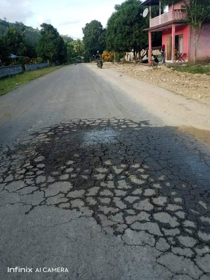 Pasalnya jalan yang baru saja di aspal kini suda rusak panggal dan kerusakan aspal itu menjadi sorotan masyarakat karna belum dinikmatinya.