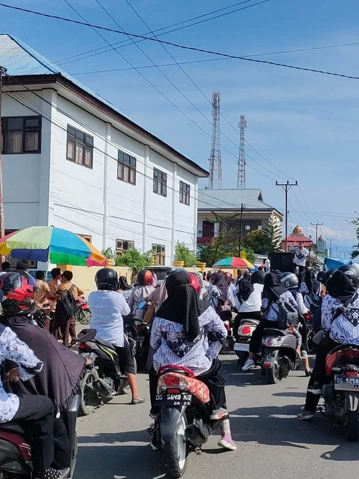 Dalam aksi itupun mereka menyampaikan beberapa tuntutan mereka sebagai Guru di Halteng bahwa.