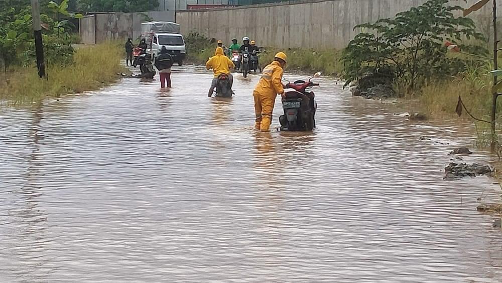 Lanjut Ais, hujan hari ini cukup deras hingga memicu banjir yang mengakibatkan beberapa lokasi di dataran rendah kawasan industri terendam habis.