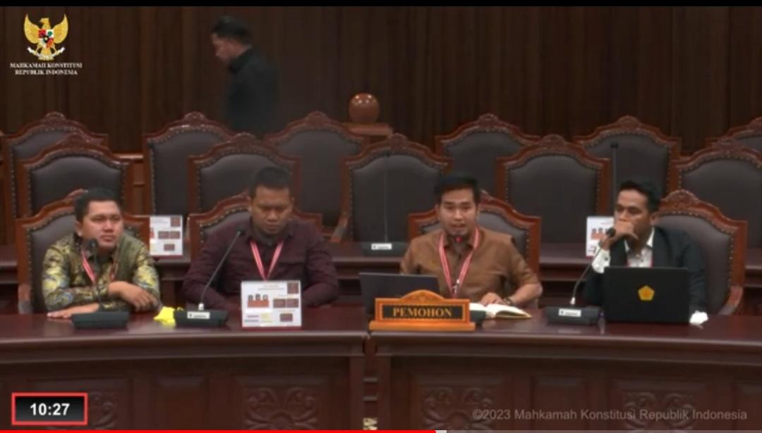 TIMURPOST.COM, JAKARTA–Sejumlah pemuda dan mahasiswa kembali menghadiri sidang di Mahkamah Konstitusi pada Rabu (1/3/2023), terkait perbaikan Permohonan Judisial Review pada pasal 39 ayat (1) dan ayat (2) Undang-Undang Nomor 6 Tahun 2014 Tentang Desa dengan nomor register 15/PUU-XXI/2023. Mereka adalah koordinator tim Eliadi Hulu, S.H., Ketua Umum DPN Permahi Saiful Salim, Subadria Nuka S.H, Randika Fitrah Darmawan, S.H., M.H. Meky Yadi Saputra. B, S.H. M., Andrean Saefudin, S.H. dan Salmen Jaindru Purba, S.H.