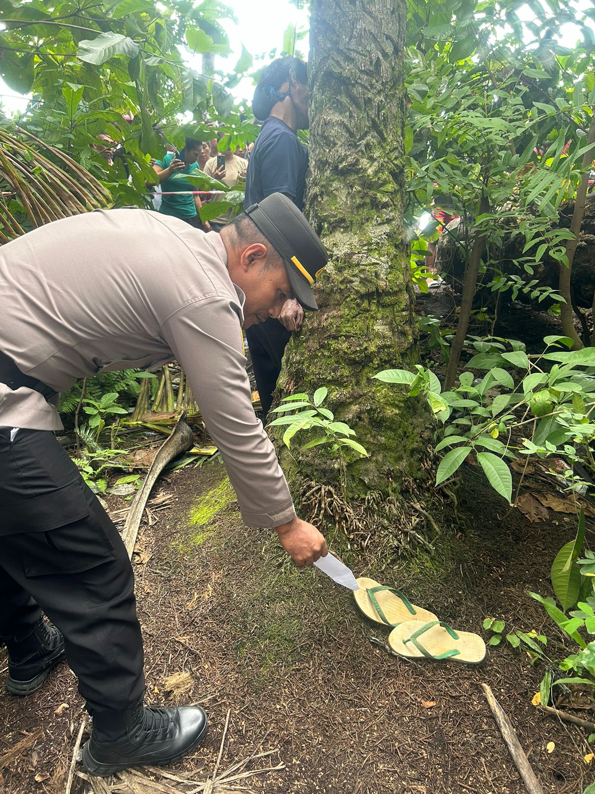 Menurut keterangan Saksi Vendry Tabulong dan Rojer Himalaya, menjelaskan sekitar sekitar pukul 09.00 WIT, para saksi hendak mencari kayu bakar utk bakar ikan di Pantai Desa Gemaf, tiba – tiba para saksi melihat seseorang yang sementara tergantung di pohon kelapa dgn posisi tali warna biru terlilit di leher dan terikat di batang pohon kelapa, melihat hal tersebut para saksi melaporkan ke Bhabinkamtibmas Desa Gemaf Bripka Lewi Masudede.