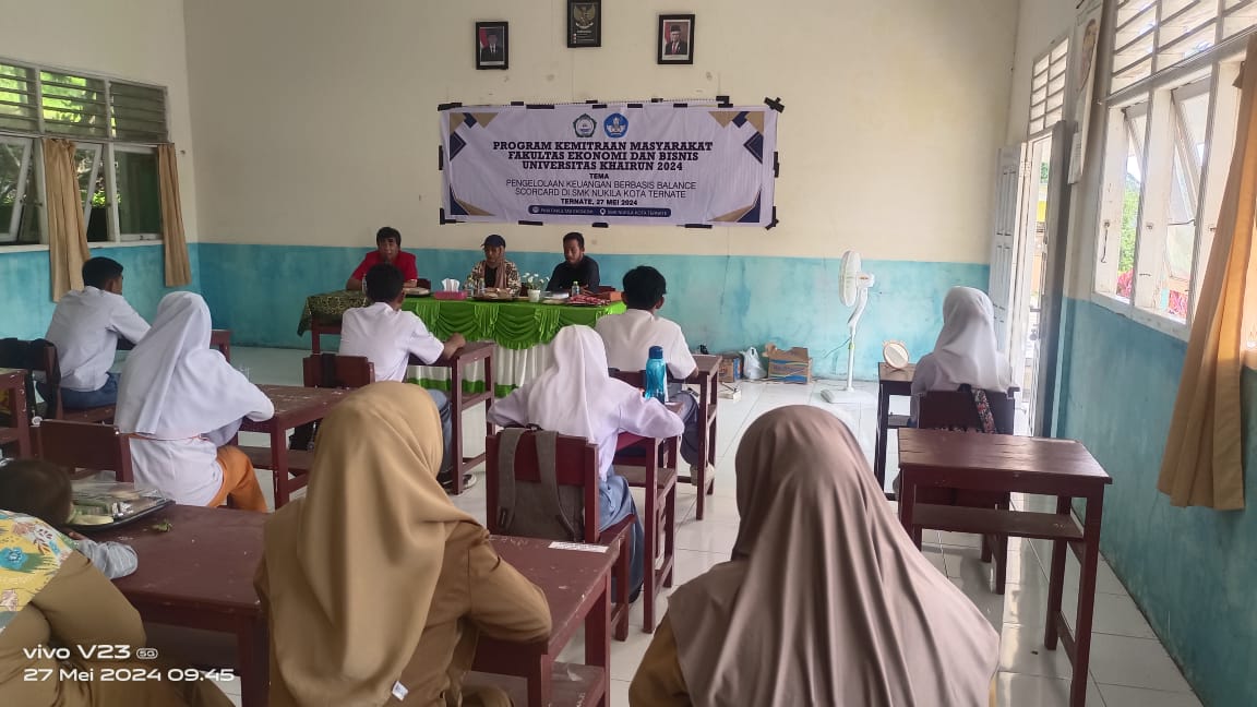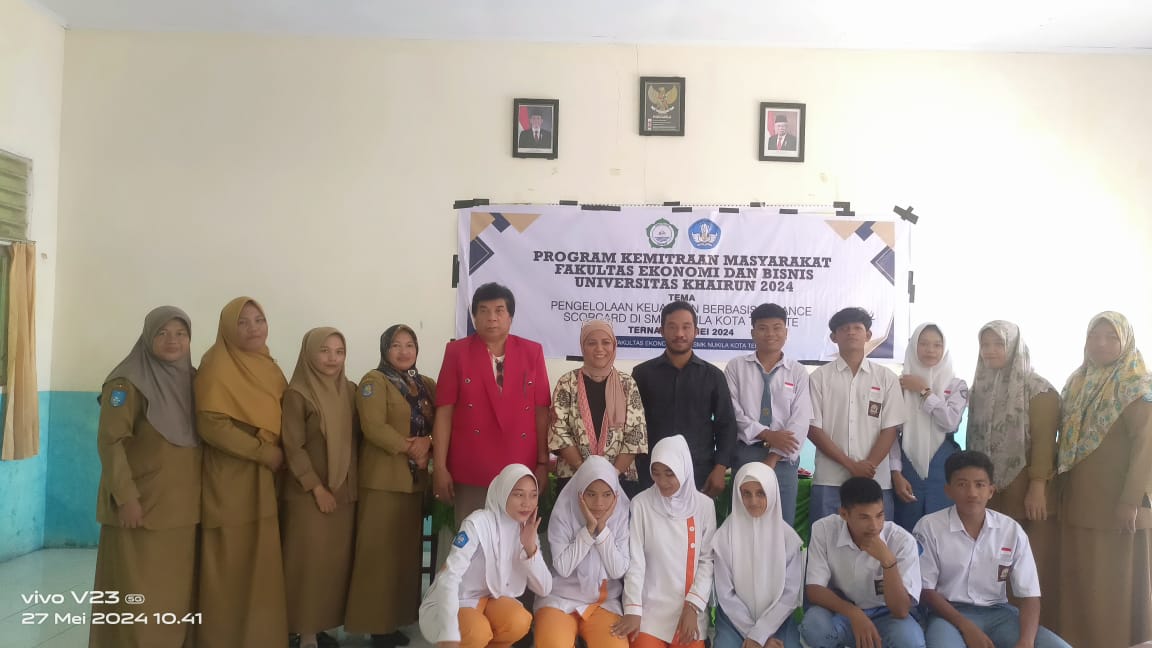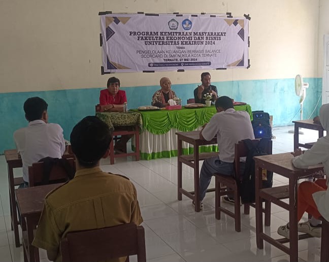POSTTIMUR.com,TERNATE–Dosen Fakultas Ekonomi dan Bisnis Universitas Khairun Ternate gelar Program Kemitraan Masyarakat (PKM) dengan tema “Pengelolaan Keuangan Berbasis Balanced Scorecard di SMK Nukila Kota Ternate”.