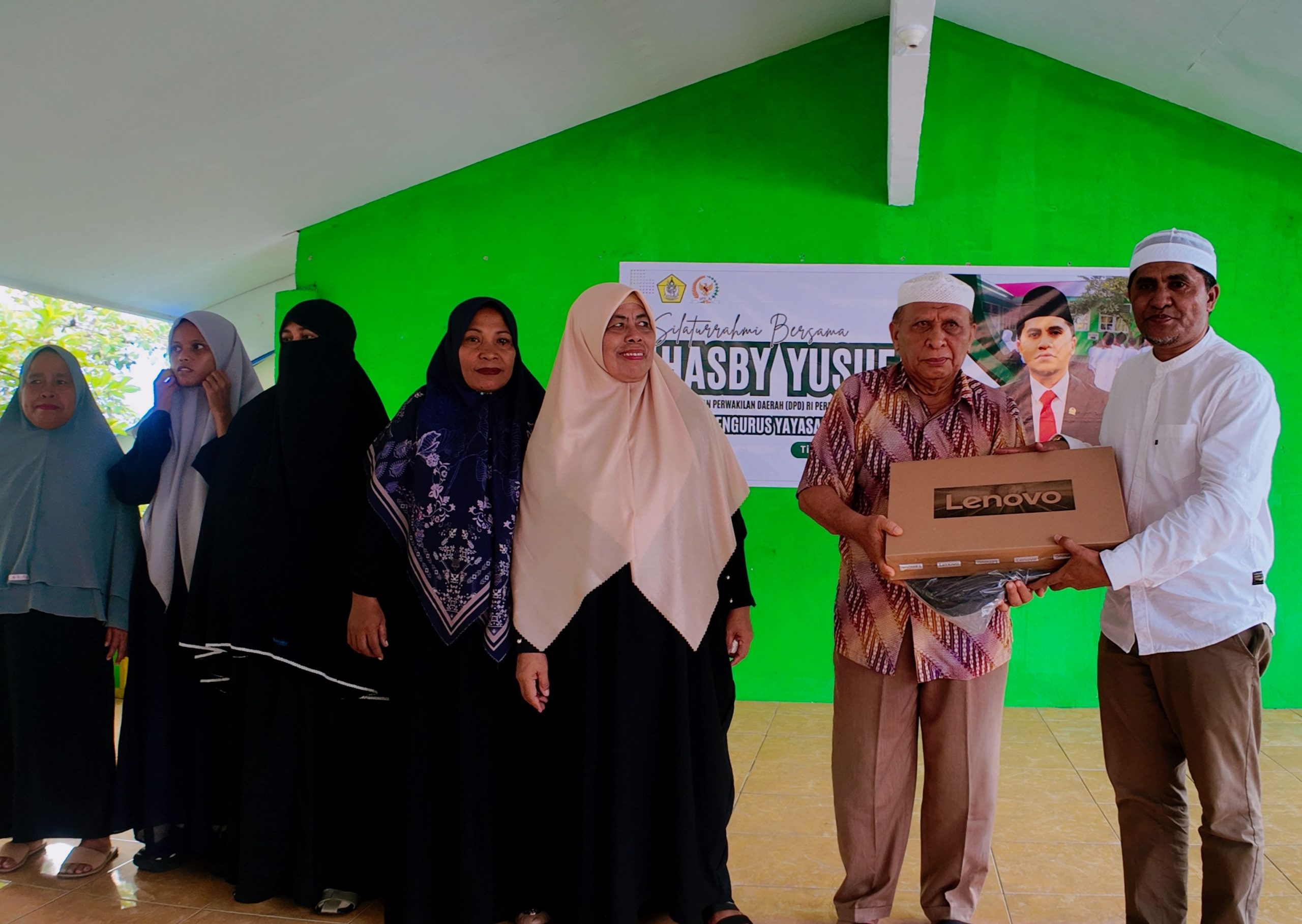 Sebagai bentuk dukungan nyata, Hasby Yusuf juga memberikan santunan kepada para guru di Alkhairat. Tak hanya itu, ia juga menyerahkan bantuan berupa laptop, infocus dan kursi sofa untuk menunjang kegiatan belajar mengajar di yayasan tersebut.