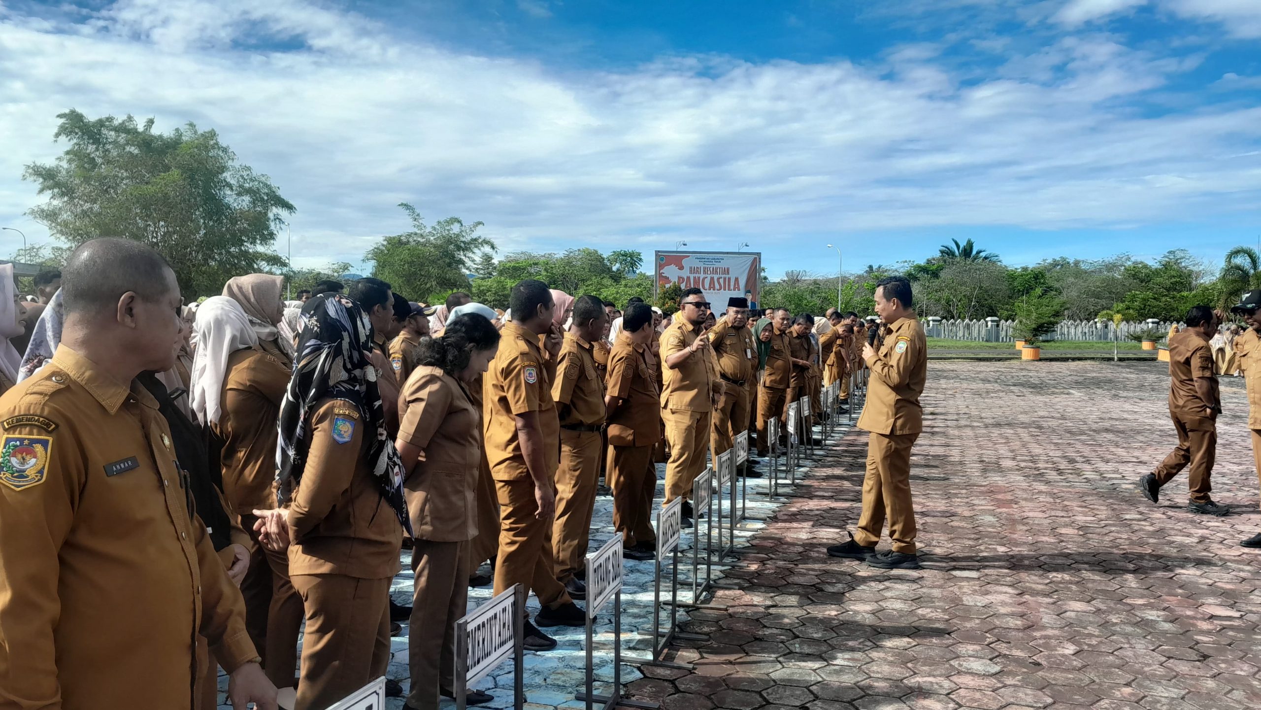 Penegasan tersebut disampaikan Sekda saat memimpin apel pagi bersama seluruh Organisasi Perangkat Daerah (OPD) di halaman Kantor Bupati Halmahera Timur, Senin (20/10/2025).