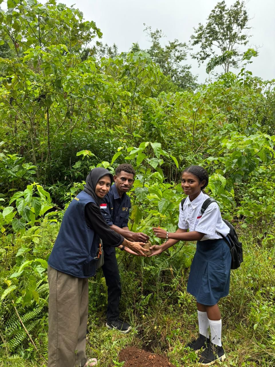 Tidak berhenti di ruang kelas, semangat itu kemudian diterjemahkan ke dalam tindakan nyata — penanaman pohon di sekitar lingkungan sekolah. Bagi mahasiswa UNIMUDA, langkah ini bukan sekadar simbol, tetapi wujud komitmen menjaga kelestarian alam Yenbeser yang dikenal kaya dan indah.