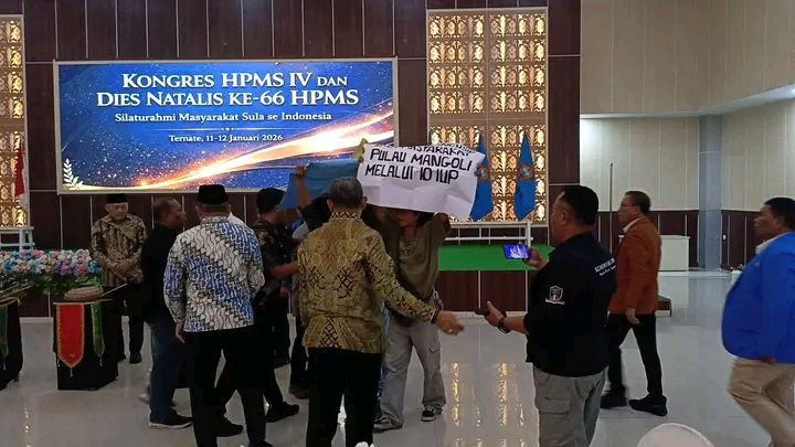 Peristiwa tersebut terjadi saat pelaksanaan Kongres Himpunan Pelajar Mahasiswa Sula (HPMS) yang berlangsung di Asrama Haji, Kelurahan Ngade, Kecamatan Ternate Selatan, Minggu (11/1/2026) malam.