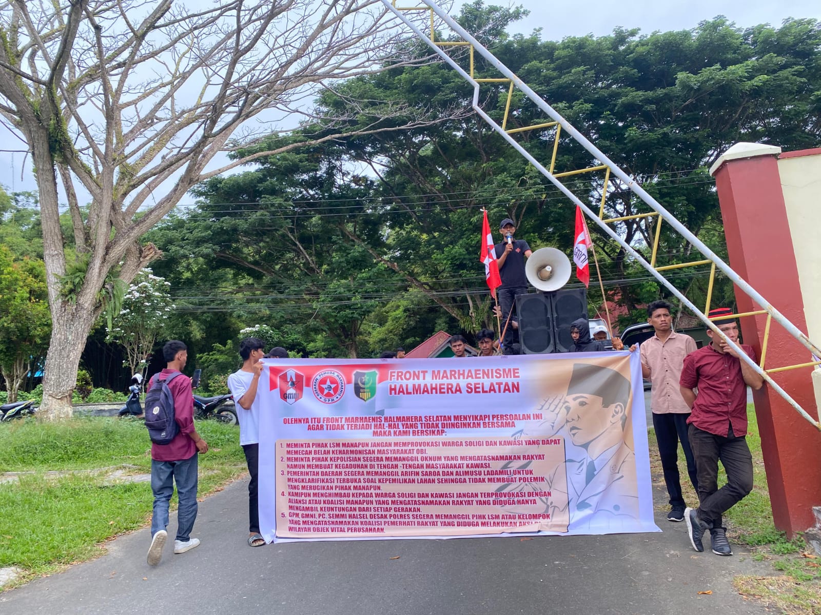 POSTTIMUR.com, HALMAHERA SELATAN – Sejumlah organisasi yang tergabung dalam Front Marhaenisme Halmahera Selatan menggelar aksi terbuka untuk menyoroti polemik lahan yang belakangan berkembang di wilayah Obi, Kabupaten Halmahera Selatan. Jumat, (13/26)