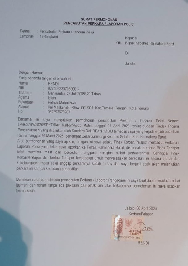 Dengan dicabutnya laporan tersebut, proses hukum yang sempat berjalan kini dihentikan, dan kedua pihak sepakat untuk mengakhiri permasalahan ini secara damai.