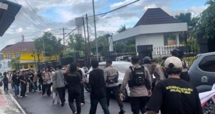 POSTTIMUR.com, TERNATE- Aksi unjuk rasa yang digelar oleh sekelompok mahasiswa di depan